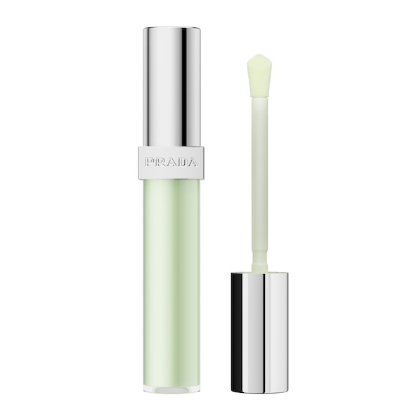 ラインアップの中で異彩を放つのが、グリーンとバナナイエローのグロス。いずれも「プラダ バーム」の人気色からインスパイアされたカラーで、透明感のある仕上がりが特徴。リップベースとして唇を整えたり、手持ちのリップに重ねたりと、多彩な使い方ができる。