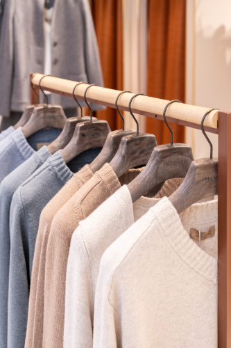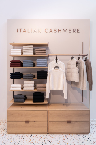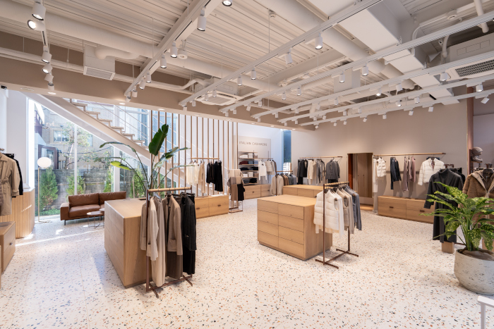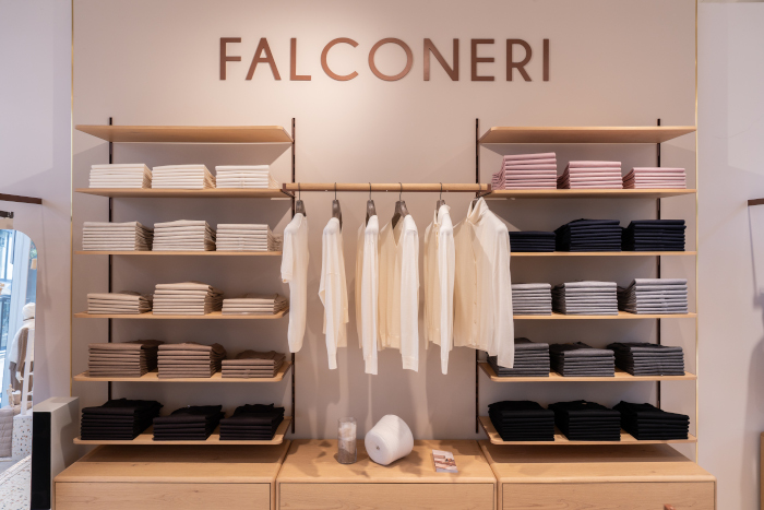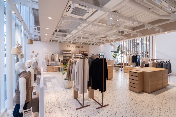 イタリアのカシミヤブランド「ファルコネーリ(FALCONERI)」が、2026年1月、東京・青山に旗艦店をオープンした。姉妹ブランドである「インティミッシミ(INTIMISSIMI)」の店舗と隣り合う同店は、地上2階建て。日本で最大級の広さを誇る。