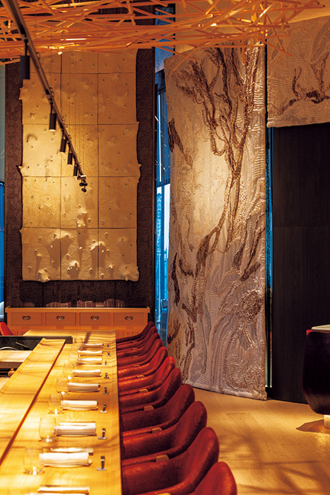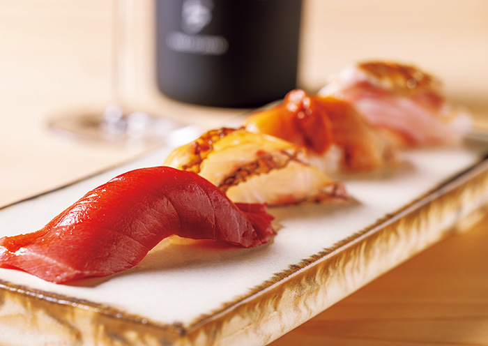 フランスで三つ星「アレノ・パリ」を手がけるヤニック・アレノシェフが、同じ建物内にすし店「ラビス」をオープンしたのは2018年のこと。フランスらしい香りを組み合わせた前菜からすし、デザートというコースの流れや、食材ごとに最適な温度で加熱した液体をブレンドした「エクストラクション」という手法で作ったオリジナルのソースを塗った握りずしなどがまたたく間に人気を集め、ついに日本に逆輸入される形で、昨年フォーシーズンズホテル大阪内に出店。フランスのエレガンスが薫るモダンな「Sushi」を楽しんでみては。