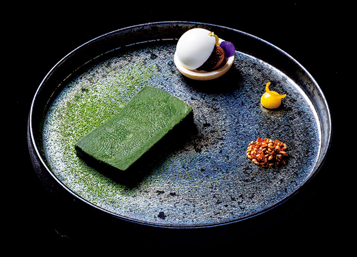 パリの名店「アストランス」でスーシェフを務めたのちに帰国した岸田周三シェフが、2006年に開業した「カンテサンス」。その名を轟かせたのは、白紙のメニュー「カルト・ブランシュ」。仕入れたその日の食材の本質にある味を見出し、調理法を変えてゆくためのまさに「シェフにお任せ」のメニュー。その日の料理はその日にしかできない、そんなジャズセッションのように軽やかに見えて、下支えするのは、堅実な技術。特に、大きな骨つき肉を、数分ごとにオーブンから出し入れして生み出される緻密な火入れは高い定評がある。「定点観測的に敢えて毎日同じ料理を提供する」という定番料理は2品だけ。シンプルでありながら洗練された盛り付けにも「日本人が作るフランス料理とは何か」を考え抜いたシェフの思いが反映されている。
