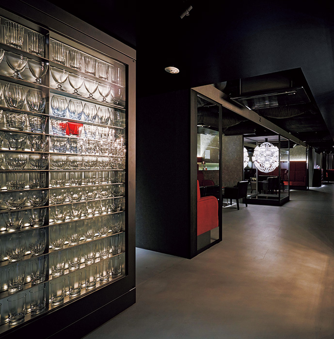 約200種のバカラグラスをお好みで、丸の内に輝く真紅の灯
