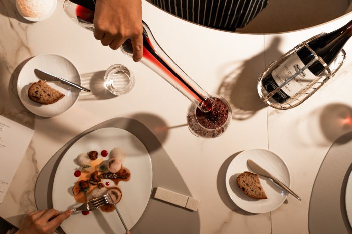 用意される料理はコース全11皿の「Menu L’Unique(メニュー・リュニック)」の一択である。メニューにはフランス語の言葉と日本語で書かれた素材が記されたのみのため、想像しながら待つ。そこに想像を超えた料理とともにシェフ自らの説明が加わり、最高のタイミングで料理が供される。