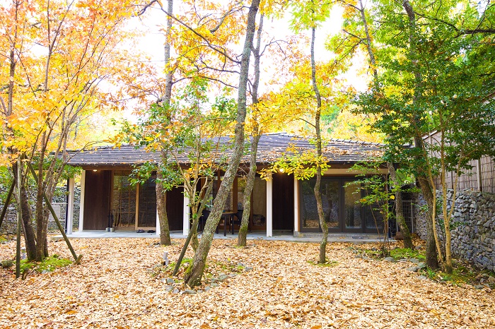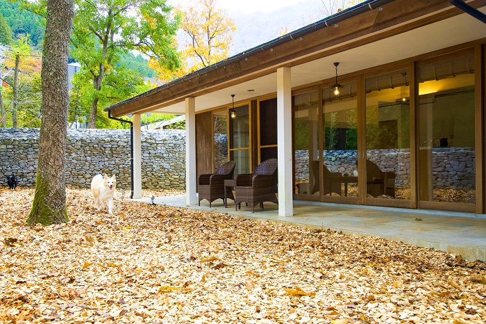 全15室すべてに温泉を備え、愛犬とともに泊まれる。山あいの静かな地にたたずむこのリゾートは、全犬種に対応し、日常を離れた穏やかな時間を大切なパートナーとともに堪能できる特別な場所だ。