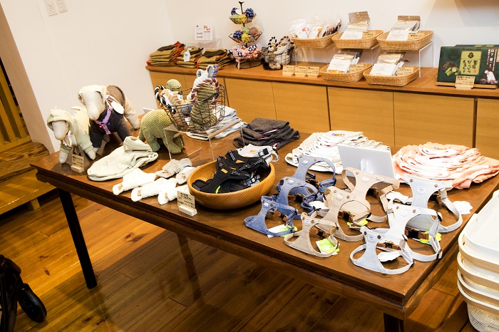 フロントの奥にあるショップでは愛犬用のグッズを販売。なかなか手にできない最先端のバギーなど貴重な商品も並ぶ