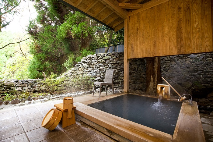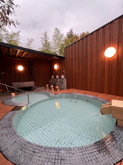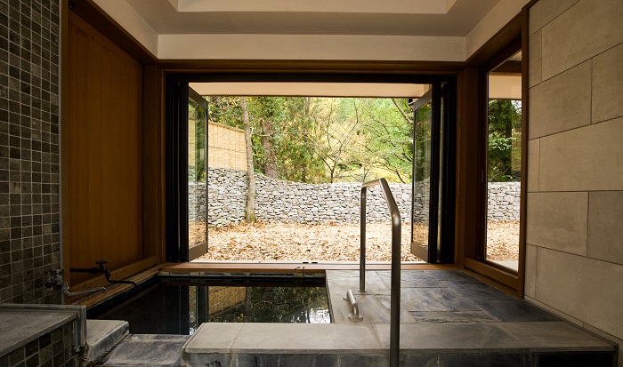 また、1室に大型犬は3頭、小型犬は6頭まで宿泊可能で、愛犬を連れた友人たちとともに宿泊を楽しむことができる。愛犬同伴型ホテルのパイオニアならではの、飼い主に優しいサービスがここにも光る。そして楽しみの一つである温泉が部屋に完備されているので、気軽に味わえるのもうれしいポイント。
