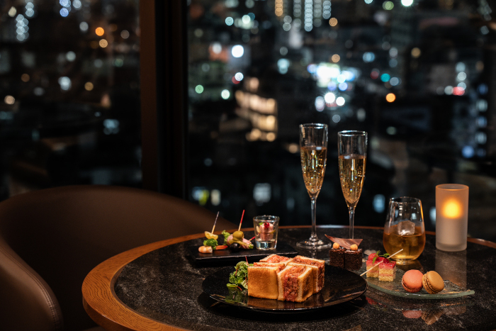 ナイトキャップには、ジューシーなローストビーフサンド、ケーキやマカロン、チョコレートなどが用意されている。各種アルコールを片手に、那覇の夜景を一望しながら、ゆったりと優雅な時間を過ごしてみてはいかが。