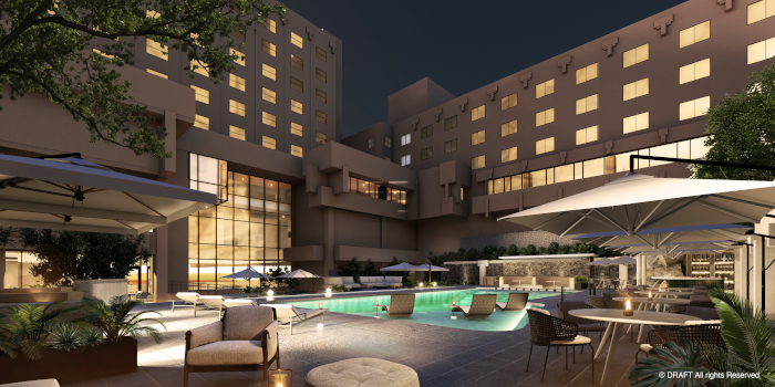 館内は、落ち着いたトーンのカラーで統一。Lounge&Barの眼下に広がるガーデンプールはエリアが拡張され、プールサイドバーも新設予定だ。都心にありながらもリゾート感あふれた雰囲気で、デイタイムからナイトタイムまで、1日を通して楽しむことができる。