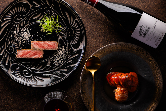 近港で水揚げされた極上の海の幸も、職人が絶妙な火加減で調理してくれる。ソムリエ厳選のフランスワインを中心とした世界各国の銘柄のほか、沖縄が世界に誇る泡盛のクース(古酒)もそろっているので、各食材とお酒とのマリアージュもぜひ楽しんでほしい。