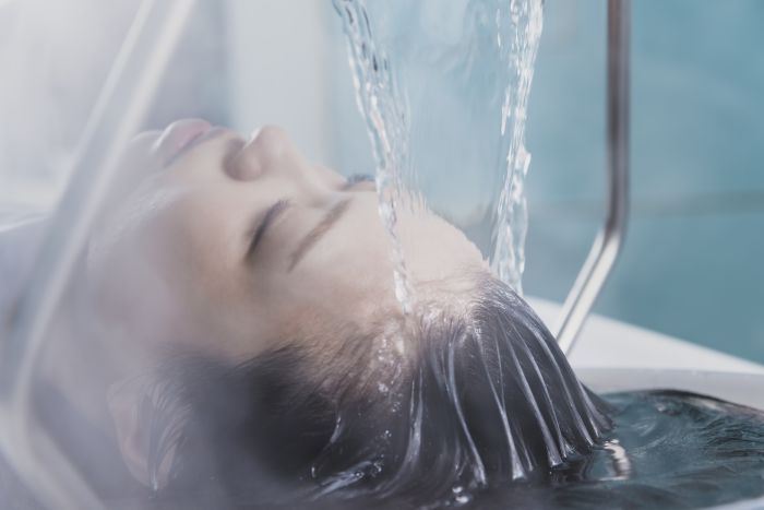 頭皮・毛髪の悩みを根本的にケアすることを目的とした独自のスカルプケアメソッドを用いて、頭皮環境を整えるためにクレイパックとジェットピーリングで頭皮をクレンジング。さらに、最新技術による高濃度水素クレンジングを行い、高濃度の分子状水素が髪や頭皮のダメージを進行させる活性酸素を洗い流し、頭皮にハリと潤いを与え、健康な状態にリセットする。