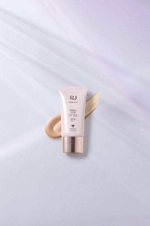 3月 2日(月)新発売の「RJエクセレント 薬用リンクルクリア美肌色 UV」は、美肌土台力※1へのアプローチとシワ改善・美白※2効果を活かしたエイジングケア※3発想の日やけ止めだ。日やけ止め、美肌土台力ケア、シワ改善・美白、化粧下地、美肌色補正、ツヤ肌仕上げまで、1本で 6つの機能を実現。スキンケアの仕上げにひと塗りするだけで、紫外線対策と自然な美肌が完成する。まるで素肌そのも のがキレイ になったような、ツヤ肌に導く美肌色 UV を、ぜひ体感して。