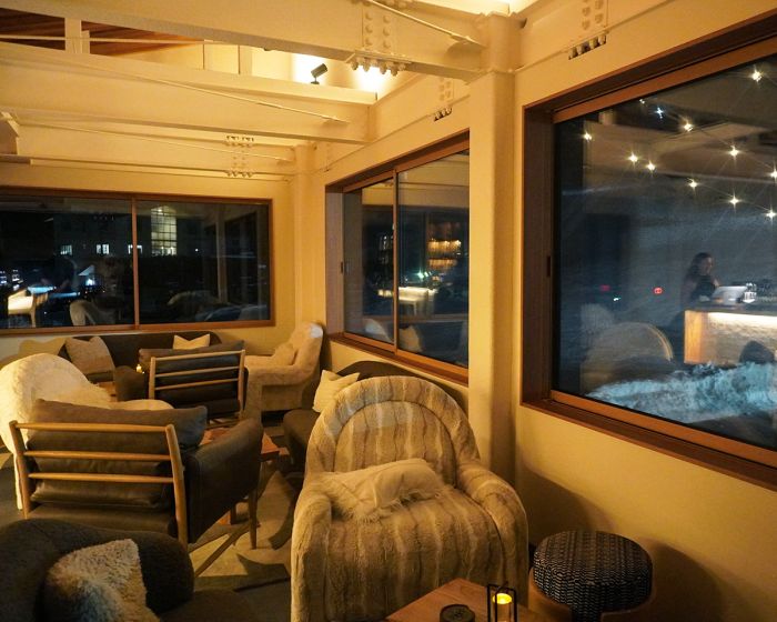 ディナーの後は、ゲレンデの夜を締めくくる秘密のバーへ行こう。「No.898」というしゃれっけたっぷりな名前のバーは、入場するためにドアコードが必要というエクスクルーシブな演出で出迎えてくれる。コードはオンライン予約完了時にゲストにのみメール/メッセージにて送られる。