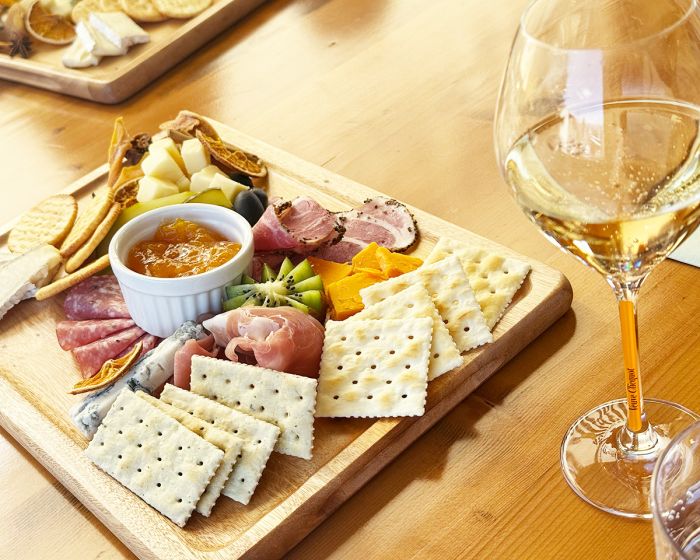 アンディお手製のシャルキュトリーや肉厚な白馬産スモークサーモン、パン、フリーフローのワインなどを解説つき(英語)で90分楽しむことができる。宿泊者のみが申し込めるので、ぜひともおすすめしたい。
