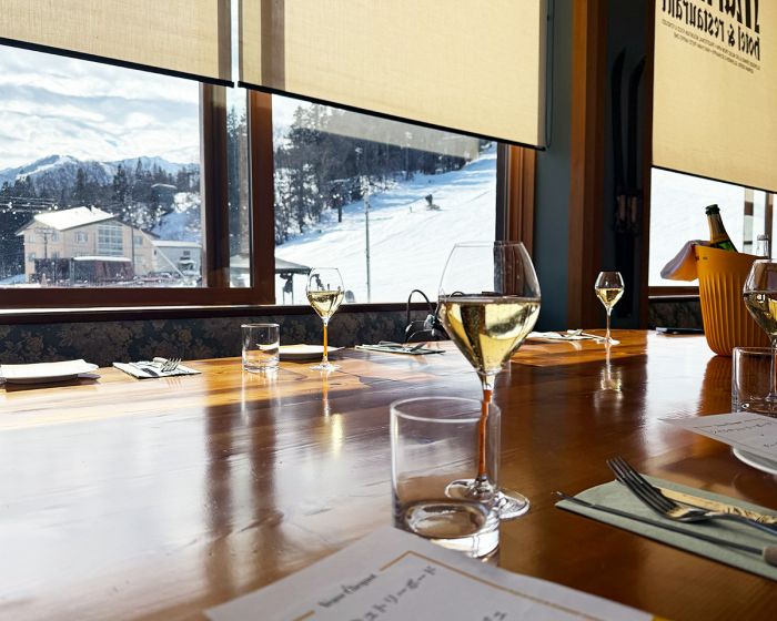 様々な飲食店が並ぶ白馬の中でも、最もエレガントなバーと言っても過言ではない。厳選された極上のウイスキーとシャンパンを取りそろえており、窓からはライトアップされた名木山ゲレンデの美しい景色を楽しむことができる。