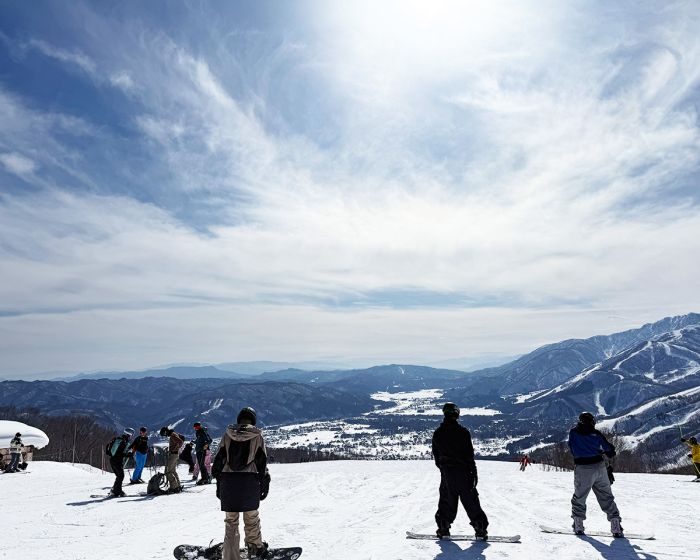 この日訪れたのは、雄大な北アルプスの眺望を楽しめる白馬岩岳スノーフィールド。初心者から上級者まで9本のコースが走っている。山頂まで登れるゴンドラから見下ろす景色も圧巻。