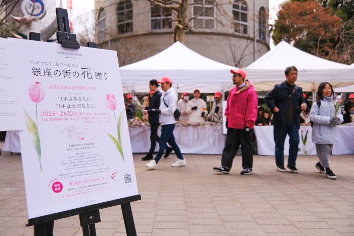 銀座から発信する社会貢献活動「銀座の街の花贈り」が3月15日開催。2本の花を無償でプレゼント