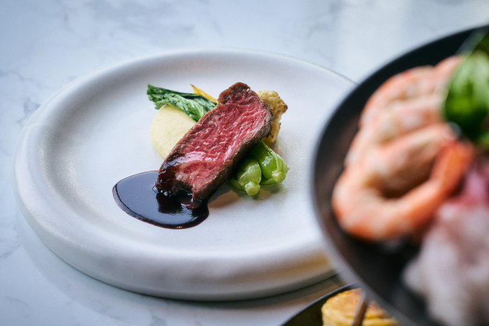「DRIFTWOOD BAR & GRILL」の新たなダイニングジャーニーとして登場した「フェアモント サンデーブランチ」の着想源は、海と⼤地の恵みを⼀⽫に盛り付けるアメリカ発祥の料理「SURF&TURF(サーフ&ターフ)」。