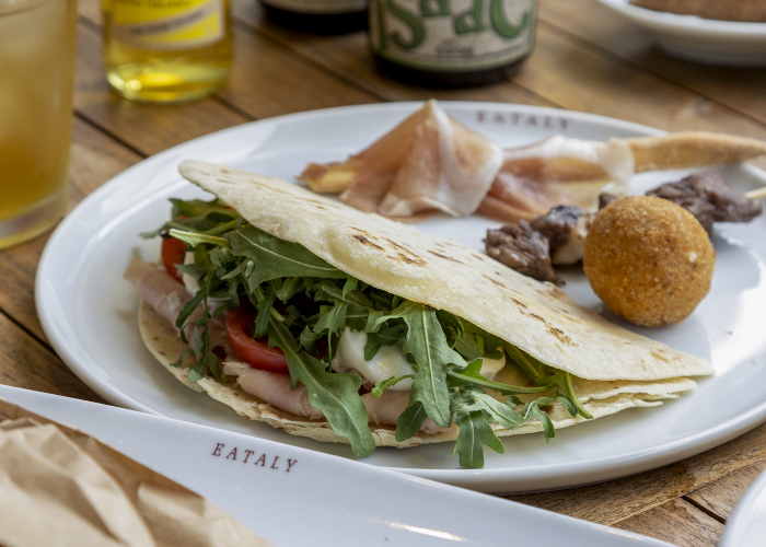 今回、イータリー銀座店・丸の内店・原宿店・湘南店内のイタリアン・レストラン「LA PASTA e LA PIZZA」では、イタリア各地を代表する「ストリートフード」を提供。注目なのは、4種類の料理が一度に楽しめる「イタリア・ストリート・フードプレート」だ。