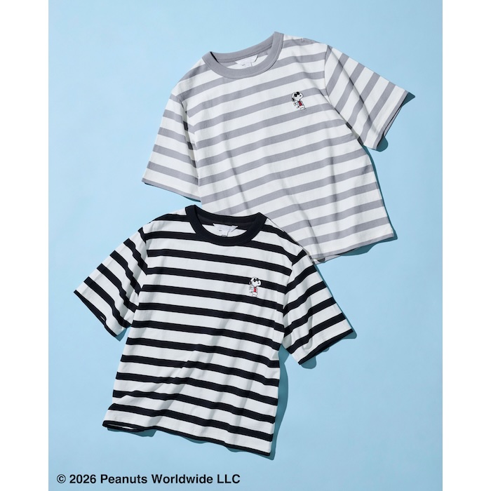 ブルックス ブラザーズ × PEANUTS ボーダーT シャツ 〈〉グレー×アイボリー 〈〉ネイビー×アイボリー 各¥18,700